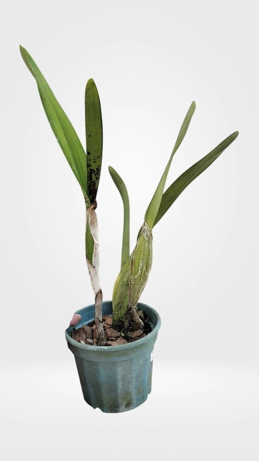 ORQUÍDEA COM AVARIAS, PODE POSSUIR MANCHAS/MACHUCADOS NAS FOLHAS E BULBOS, SINAIS DE DESIDRATAÇÃO, FOLHAS AMARELADAS, ETC.